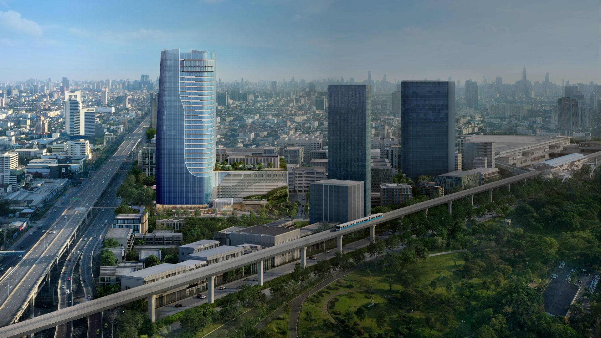 Soaring proudly on Vibhavadi-Rangsit Road, the heart of the new high potential business district, S-OASIS is a distinctive life sanctuary that elevates the workplace of the future. The 35-storey building brings to life the new lifestyle hub of the district, offering unparalleled accessibility via Bang Sue Grand Station, easy connections via BTS (Mo Chit Station), MRT (Chatuchak Park Station) and is only a 20-minute drive from Don Mueang Airport.